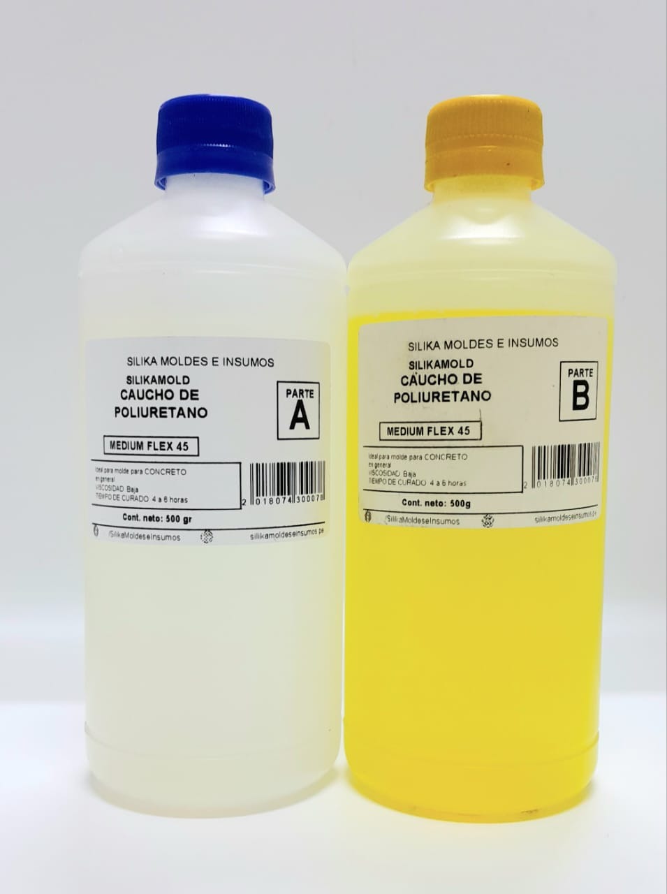 Caucho de Poliuretano SILIKAMOLD Medium Flex 45, del tipo dos componentes Poliol + Isocianato.