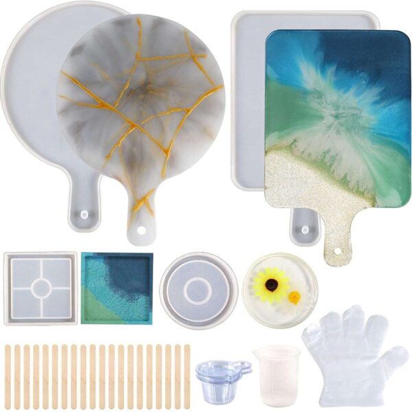 E53 Molde Resina – Set 1 molde de bandeja de resina viene con 4 moldes de posavasos